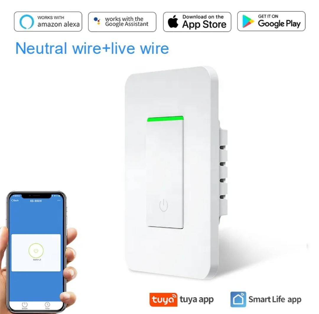 Convierte tu hogar en un espacio inteligente con este interruptor de luz WiFi de pared, ideal para controlar la iluminación desde tu smartphone o mediante comandos de voz.